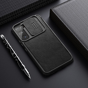 Bao da chống sốc cho dành cho Samsung Galaxy S22/ S22 Plus/ S22 Ultra hiệu Nillkin Qin Pro trang bị nắp bảo vệ Camera (Chất liệu da cao cấp, có ngăn đựng thẻ, mặt da siêu mềm mịn) - hàng nhập khẩu