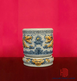 Bát Hương Men Rạn Đắp Nổi Siza 25cm ( Kèm Chân Đế )