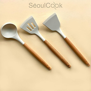Bộ 3 dụng cụ nấu ăn Vá/ Sạn/Xẻng có rãnh cán gỗ Seoulcook cao cấp, chống dính dùng cho nhà bếp