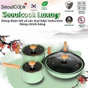 Bộ 3 món nồi chảo đáy từ cao cấp Hàn Quốc Seoulcook Luxury chống dính vân đá an toàn cho sức khỏe, dùng được tất cả các loại bếp/ Induction – Hàng chính hãng