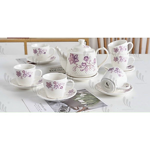 Bộ ấm chén pha trà sứ camelia kèm 7 đĩa lót tách ( Giao ngẫu nhiên ) - ANTH465