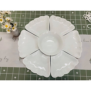 BỘ BÁT ĐĨA HOA MẶT TRỜI TRẮNG TÔ TRÒN BÁT TRÀNG