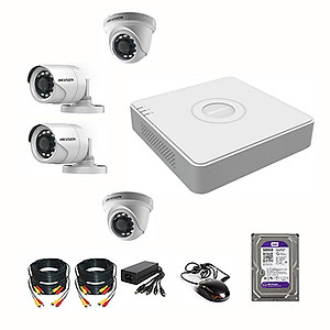 Bộ Camera HIKVISION 4 Mắt FULL HD 1080P - 2.0MPX Chính Hãng (Đủ phụ kiện lắp đặt + Ổ Cứng 500GB)