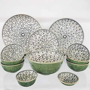 So sánh giá Bộ Chén Dĩa 12 Sản Phẩm Màu Men Ngọc Họa Tiết Gốm Sứ Bát Tràng
