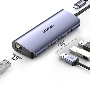 bộ chuyển cổng Type C Ugreen 252LA60717CM 5 trong 1 màu xám 4K HDMI + Gigabit LAN + 3 x USB 3.0 chuẩn A + PD 60W hàng chính hãng