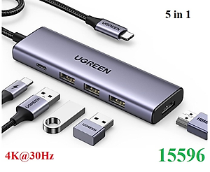 Bộ Chuyển Đổi 5in1 Ugreen 15596 USB type C sang 1 x HDMI 4K30Hz + 3 x USB 3.0 + 1 x USB-C PD 100W-Hàng chính hãng