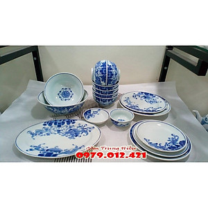 So sánh giá Bộ đồ ăn men lam Bát Tràng họa tiết hoa sen