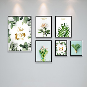 Bộ Khung Ảnh Hoa Lá Treo Tường Tặng Kèm bộ ảnh như hình mẫu, đinh treo tranh và sơ đồ treo PGC230