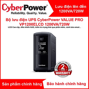 Bộ lưu điện UPS CyberPower VALUE Pro VP1200ELCD - 1200VA/720W - Tích hợp điều khiển Nas, pc, Màn hình hiển thị LCD, dòng sản phẩm cao cấp - Hàng Chính Hãng