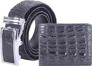 Bộ Ví & Thắt Lưng Nam Da Cá Sấu Gai Đuôi Huy Hoàng HT2207-HT4210 (23 x 11,5 cm) - Đen