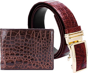 Bộ Ví & Thắt Lưng Nam Da Cá Sấu Huy Hoàng HT2240-HT4202 (23 x 11,5 cm) - Nâu Đất