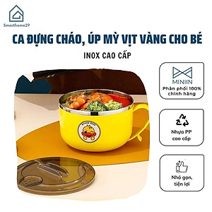 Ca Đựng Cháo Giữ Nhiệt, Ca Úp Mỳ, Tô khuấy Bột Ăn Dặm Cho Bé Hình Vịt Vàng Đáng Yêu - Chính hãng MINIIN