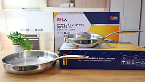 Chảo Inox Vân Kim Cương Seka Nông Lòng 24cm 28cm 3 Lớp Nguyên Khối, Dùng Cho Mọi Loại Bếp - Hàng Chính Hãng
