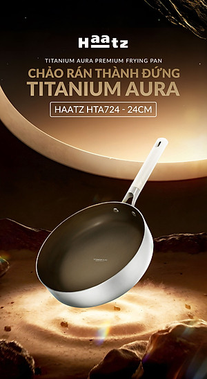 Chảo Titanium Aura Haatz HTA724 Size 24cm, inox 316, Chống Dính Tự Thân, Bền Bỉ, Dùng Cho Mọi Loại Bếp - Hàng Chính Hãng
