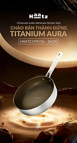 Chảo Titanium Aura Haatz HTA726 Size 26cm, inox 316, Chống Dính Tự Thân, Bền Bỉ, Dùng Cho Mọi Loại Bếp - Hàng Chính Hãng