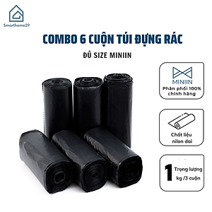 Cmbo 6 Cuộn Túi Đựng Rác Gia Đình, Bao Đựng Rác Văn Phòng, Trường Học Tiện Lợi Màu Đen Đầy Đủ 3 Size Tiểu Trung Đại - Chính Hãng MINIIN