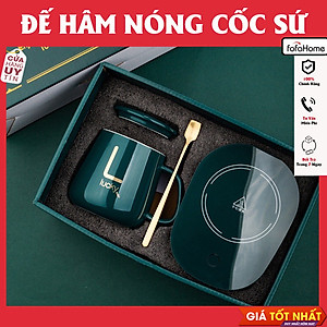 Cốc Hâm Nóng Đồ Uống Kèm Đế Điện, Bộ Ly Sứ Kèm Đế Điện Hâm Nóng Trà, Cafe, Hâm Sữa Kèm Thìa Vàng, Hộp Sang Trọng Giao Màu Ngẫu Nhiên