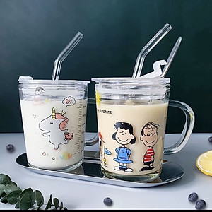Cốc Pha Sữa Uống Nước Cốc Thuỷ Tinh Chịu Nhiệt Có Vạch Chia Dung Tích 400ML- Có Nắp Đậy Kín Chặt Kèm Ống hút Hút - Hàng Chính Hãng MINIIN