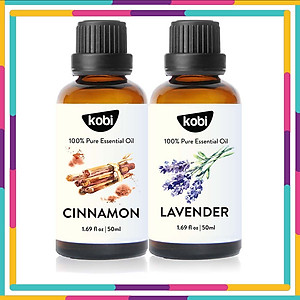 Combo 2 Tinh Dầu Kobi Nhập Khẩu Ấn Độ: Tinh Dầu Oải Hương (50ml) + Tinh Dầu Quế (50ml) - Tinh Dầu Thiên Nhiên Nguyên Chất, Giúp Giảm Stress, Làm Thơm Phòng