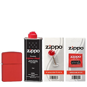 Combo 4 sản phẩm : Bật lửa Zipp Matte Red 233+Xăng+Đá+Bấc