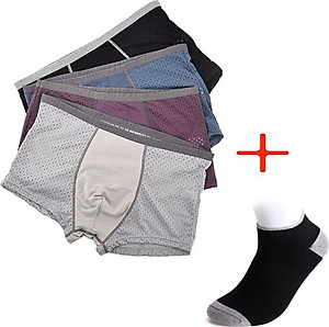Combo Hộp 4 Quần Sịp Đùi Nam Thông Hơi + Tặng 01 Tất Cổ Ngắn (Giao màu ngẫu nhiên)