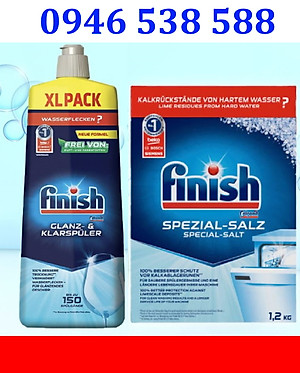 Combo Muối rửa bát finish 1.5kg + Nước làm bóng finish 750ml dùng cho Máy rửa bát chén ly