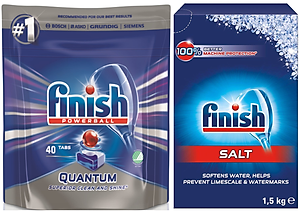 Combo Muối rửa bát Finish 1.5kg + Viên rửa bát Finish Quantum 40 viên