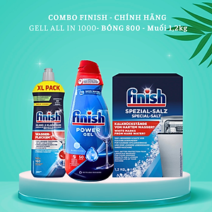 Combo Nước rửa bát Finish All in 1 max 1 Lít + muối rửa bát Finish 1.2kg + Nước làm bóng bát Finish 800ml dùng cho máy rửa bát