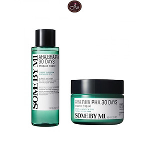 Combo Toner + Kem ngăn ngừa mụn Some By Mi AHA-BHA-PHA 30 Days Miracle Toner Cream