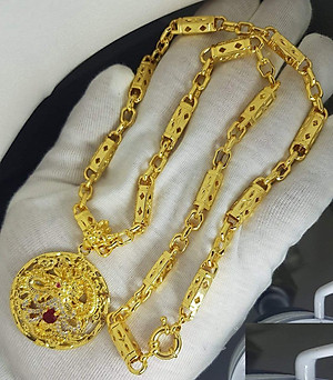 Dây Chuyền Khúc Mặt Tròn Rồng Ngọc Đỏ Mạ Vàng 18K + TẶNG LÁ BỒ ĐỀ MAY MẮN TÀI LỘC ĐỂ VÍ ĐIỆN THOẠI