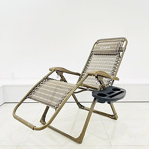 Ghế xếp thư giãn SUMIKA 179 NEW - Khóa bằng kim loại, vải lưới Textilene thoáng khí, tải trọng 300kg, khung ghế bằng thép, có khay đựng ly