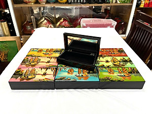 Hộp trang sức sơn mài vẽ màu lót nhung bên trong sang trọng size 10x20 cm