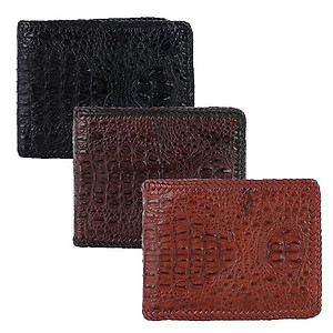 HP2762-64-66 - Ví nam Huy Hoàng da cá sấu nguyên con đan viền màu đen, nâu đất, nâu đỏ