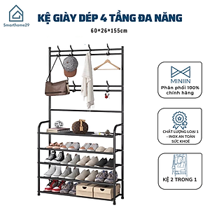 Kệ Giày Chữ L 4 Tầng Đa Năng Để Giày Dép Và Có Móc Treo Quần Áo Vừa Tiện Lợi Vừa Sang Trọng Decor Phong Cách Vintage - Hàng Chính Hãng MINIIN