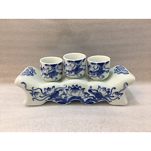 Kỷ Ngai 3 Chén Thờ Men Xanh Vẽ Sen