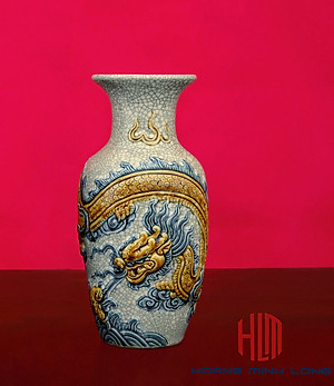 Lọ Lộc Bình Men Rạn Đắp Nổi Chiều Cao 42cm