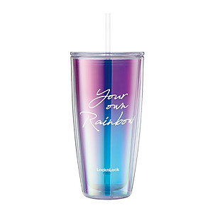 Ly nhựa 2 lớp LocknLock HAP507VOLH Rainbow - kèm ống hút 750ml - Màu cầu vồng