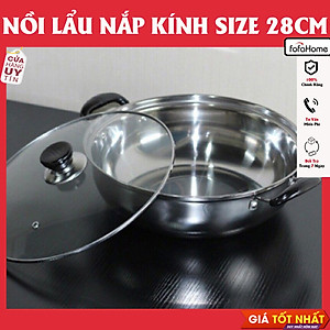 Nồi Lẩu Inox Nắp Kính Dùng Được Cho Mọi Loại Bếp Size 26cm, 28cm