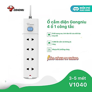 Ổ Cắm Điện Gongniu Đa Năng 4 Ổ 1 Công Tắc – Công Suất 10A/250/2500W – Trắng – Chính Hãng (V1040)