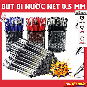 Sét 20 Bút Bi Nước Văn Phòng 0,5mm Mực Đều Nét Chữ Đẹp Đủ Màu Đỏ, Đen, Xanh