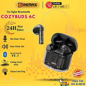 Tai nghe True Wireless Remax CozyBuds 6C - Thiết kế trong suốt độc đáo - Âm Thanh vòm sống động - Bass mạnh mẽ Hàng Chính Hãng Remax Bảo Hành 12 Tháng