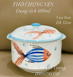 Thố chưng yến gốm sứ Bát Tràng cao cấp vẽ tay hoạ tiết cá dung tích 600ml