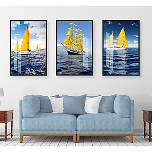 Tranh bộ 3 Bức - Tranh treo phòng khách-Tranh treo tường Thuận Buồm Xuôi Gió TB 38517 /Gỗ MDF cao cấp phủ kim sa/ Chống ẩm mốc, mối mọt/Bo viền góc tròn