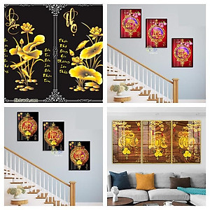 So sánh giá Tranh tráng gương Phúc Lộc Thọ tranh tráng gương phòng ngủ, tranh pha lê treo phòng khách combo 3 bức
