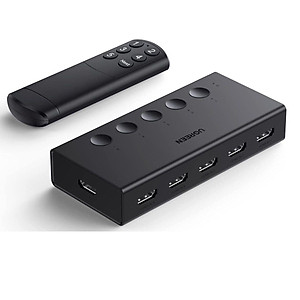 Ugreen 90512 4K60Hz Bộ gộp HDMI 2.0 5 vào 1 ra kèm cáp cấp nguồn USB-C dài 1M + remote cm568 - Hàng chính hãng
