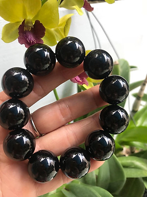 VÒNG TAY HẠT LỚN ĐÁ MÃ NÃO ĐEN 20LY NAM ĐEO MỆNH THUỶ MỘC