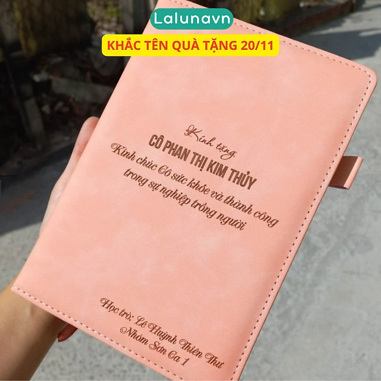 Sổ tay bìa da PU KHẮC TÊN cỡ A5 sổ ghi chép quà tặng văn phòng phẩm hội nghị 360 trang B122