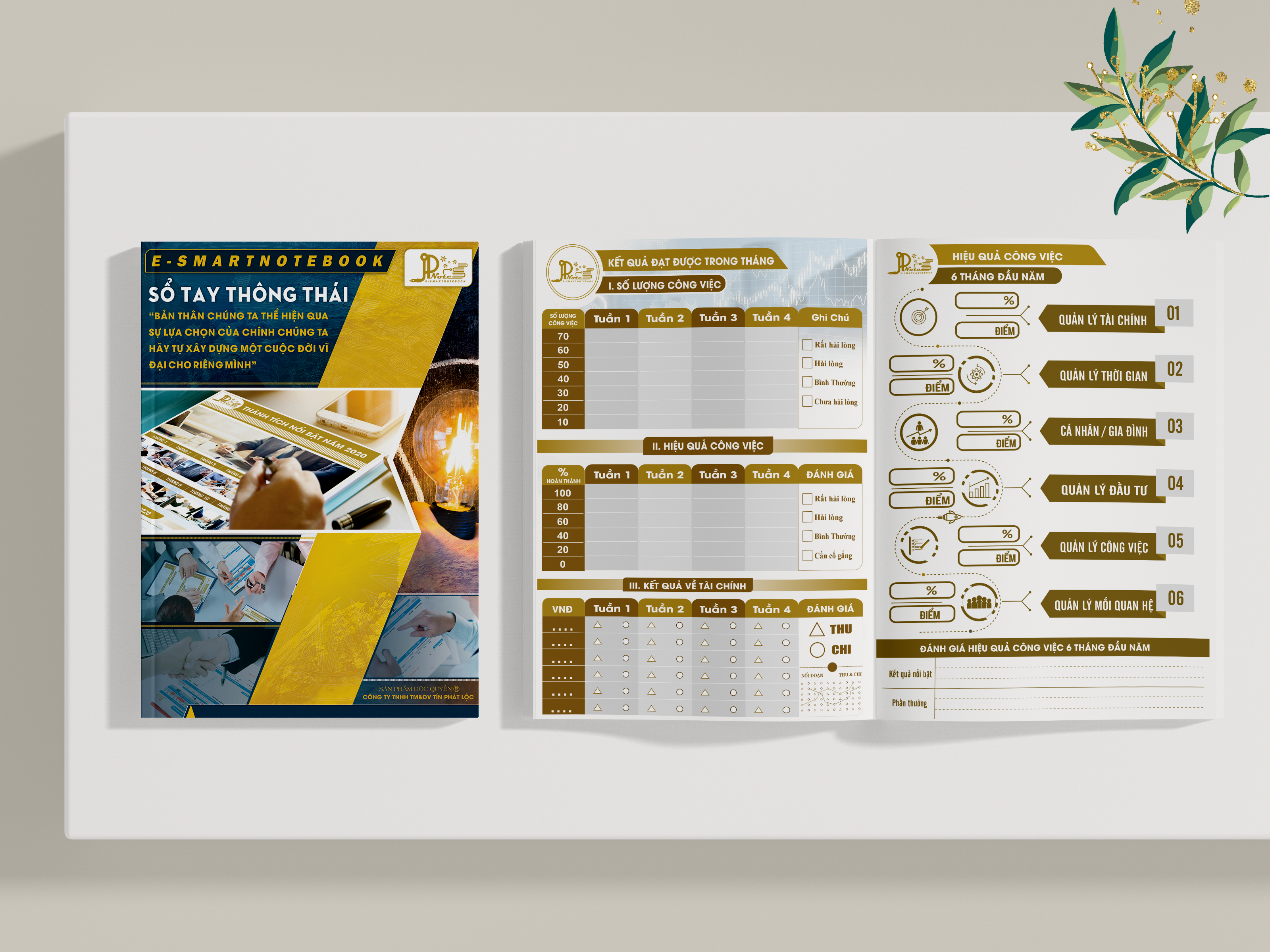 Với số lượng lên đến 256 trang sử dụng liên tục trong thời gian 1 năm với 2 cuốn sổ tập 1 và tập 2. Sổ tay thông thái e-smart notebook bao gồm 5 phần tương ứng 5 mảnh ghép quan trọng trong cuộc sống của bạn: