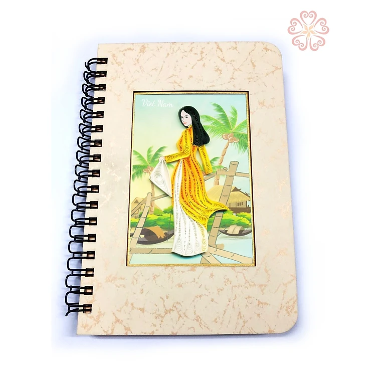 Sổ tay giấy xoắn nghệ thuật , chủ đề tà áo dài việt nam size 10.7x16cm