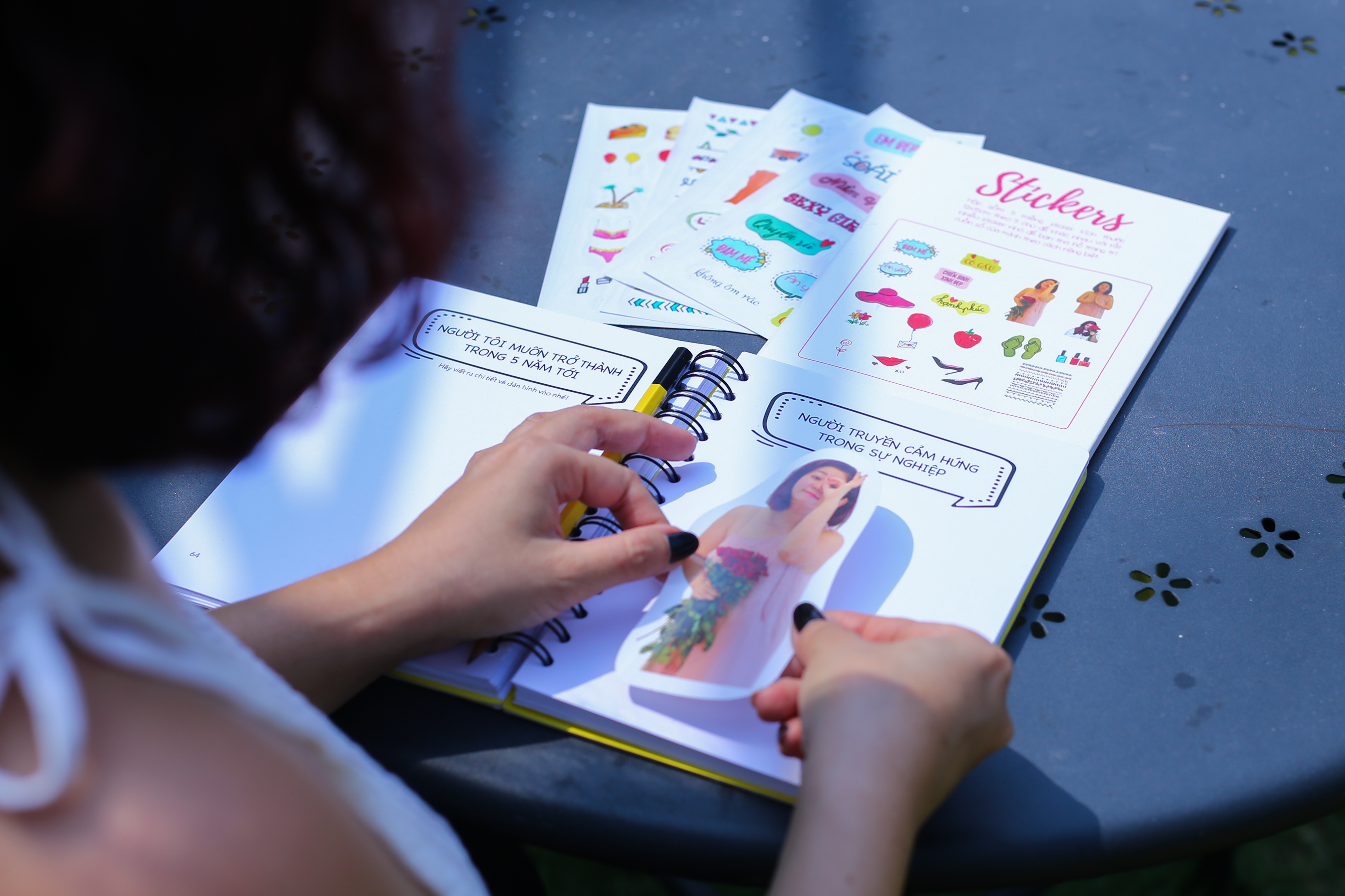 - Các hình vẽ, hoạ tiết trong sổ đều có dụng ý để bạn có thể tô màu, vẽ thêm hoặc dán sticker